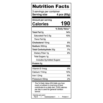 Cooked White Rice (Rice, Water, Salt), Onions, Bread Crumbs (Unbleached and Unbromated Wheat Flour, Sugar, Salt, Yeast, Ascorbic Acid), Canola Oil, Smoked Gouda Cheese (Pasteurized Part Skim Milk, Cultures, Salt, Liquid Smoke Flavoring, Enzymes, Annatto), Parmesan Cheese (Pasteurized Milk, Cheese Culture, Enzymes, Salt), Fontina Cheese (Pasteurized Milk, Cheese Cultures Salt, Enzymes), Green Onions, Unbleached Enriched Flour (Wheat Flour Enriched (Niacin, Reduced Iron, Thiamine Mononitrate, Riboflavin, Folic Acid), Malted Barley Flour), Egg Wash (Eggs, Water), Olive Oil, Lemon Juice, Parsley, Sea Salt, Mushroom Base (Cooked Mushrooms, Mushroom Extract, Salt, Natural Flavoring, Canola Oil, Organic Cane Sugar, Potato Flour And Onion Powder), Black Pepper. CONTAINS: EGGS, MILK AND WHEAT INGREDIENTS.