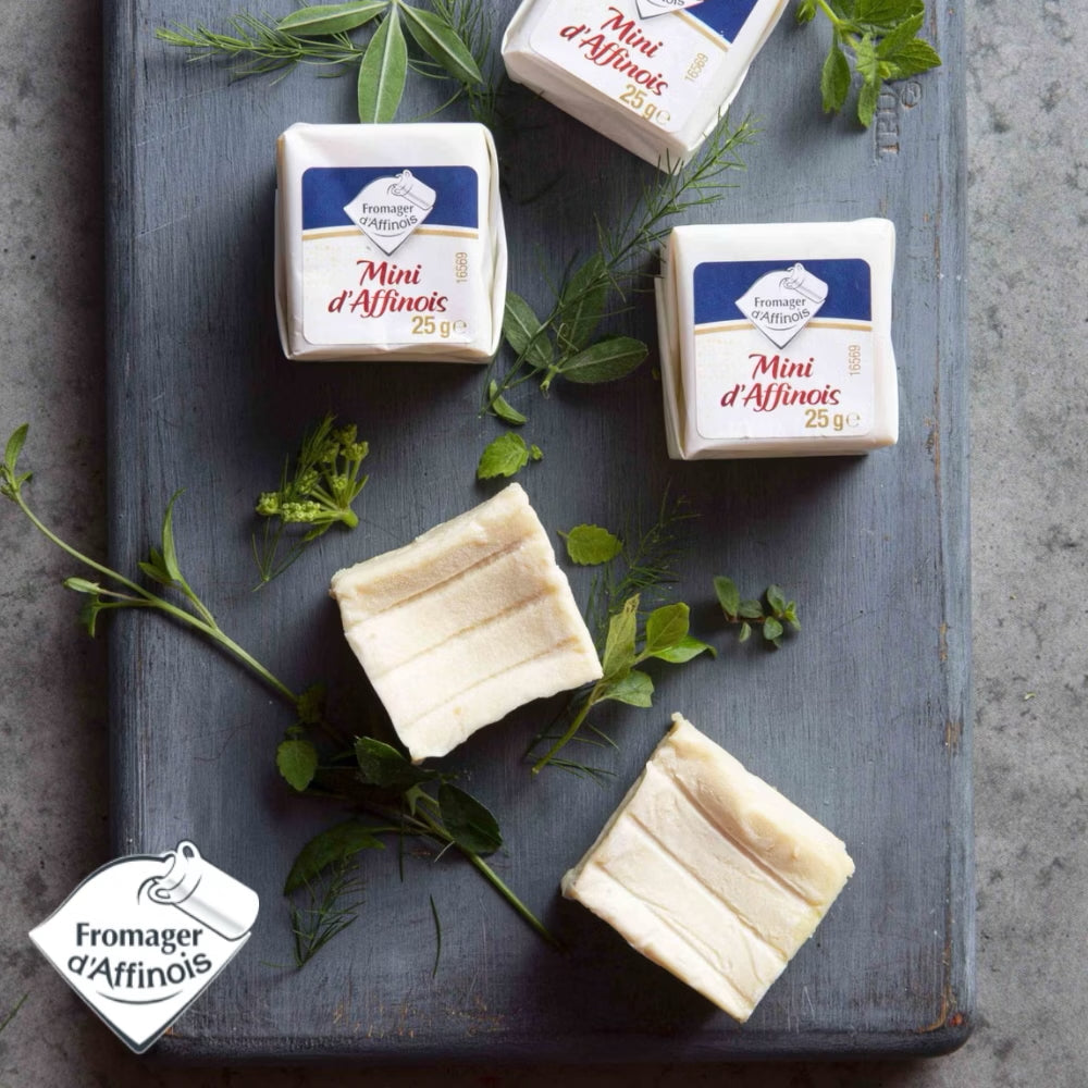 Indulge in the luxurious Fromager d'Affinois Mini Snack Cheese, perfect for late-night cravings, lunchboxes and cheese party appetizers. With a silky texture, creamy heart, and thin bloomy rind, this soft-ripened double cream cheese is crafted in the French Alps. Pair it with olive or rosemary crackers and cured meats for an elevated gourmet experience.