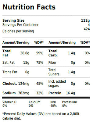 Ingredients : Pork, Pork Blood (Pork Blood, Water, Vinegar), Dry Onions, Smoked Paprika Powder, Salt, Cane Sugar, Black Pepper, Spices (Nutmeg, Coriander, Caraway, Allspices). Encased in Natural Pork Casing.