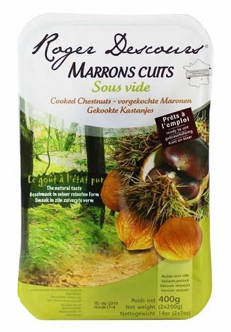 Desscription: Roger Descours Marrons Entiers are cooked and peeled chestnuts from France. They are perfect in a dressing for your turkey, either for Thanksgiving or Christmas.