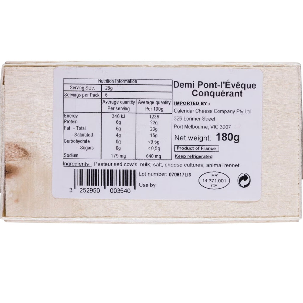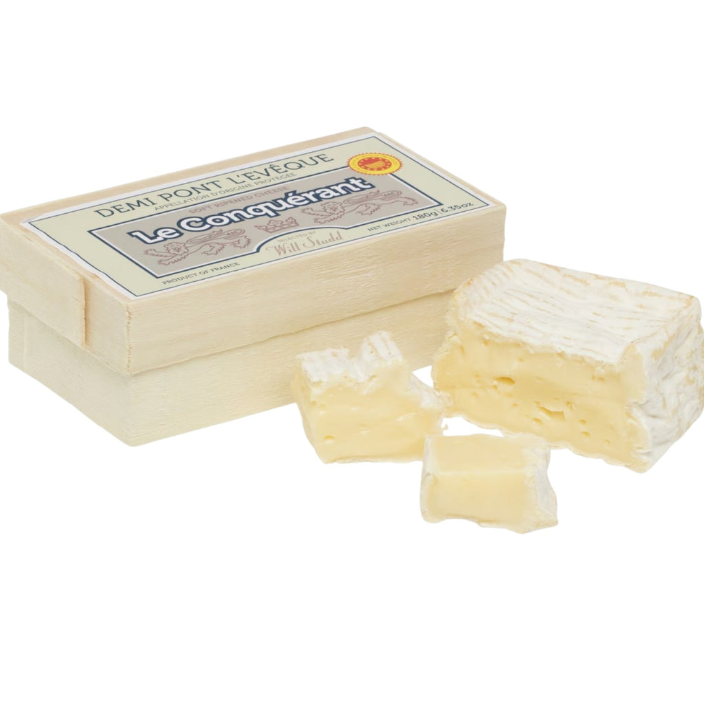 Le Conquérant Demi Pont L’Évêque is a pungent, monastic washed-rind cheese that comes from the heart of the Pays d’Auge in Normandy, France. It is specially made for Will using fresh whole milk collected from the designated AOC region of Pont L’Évêque.