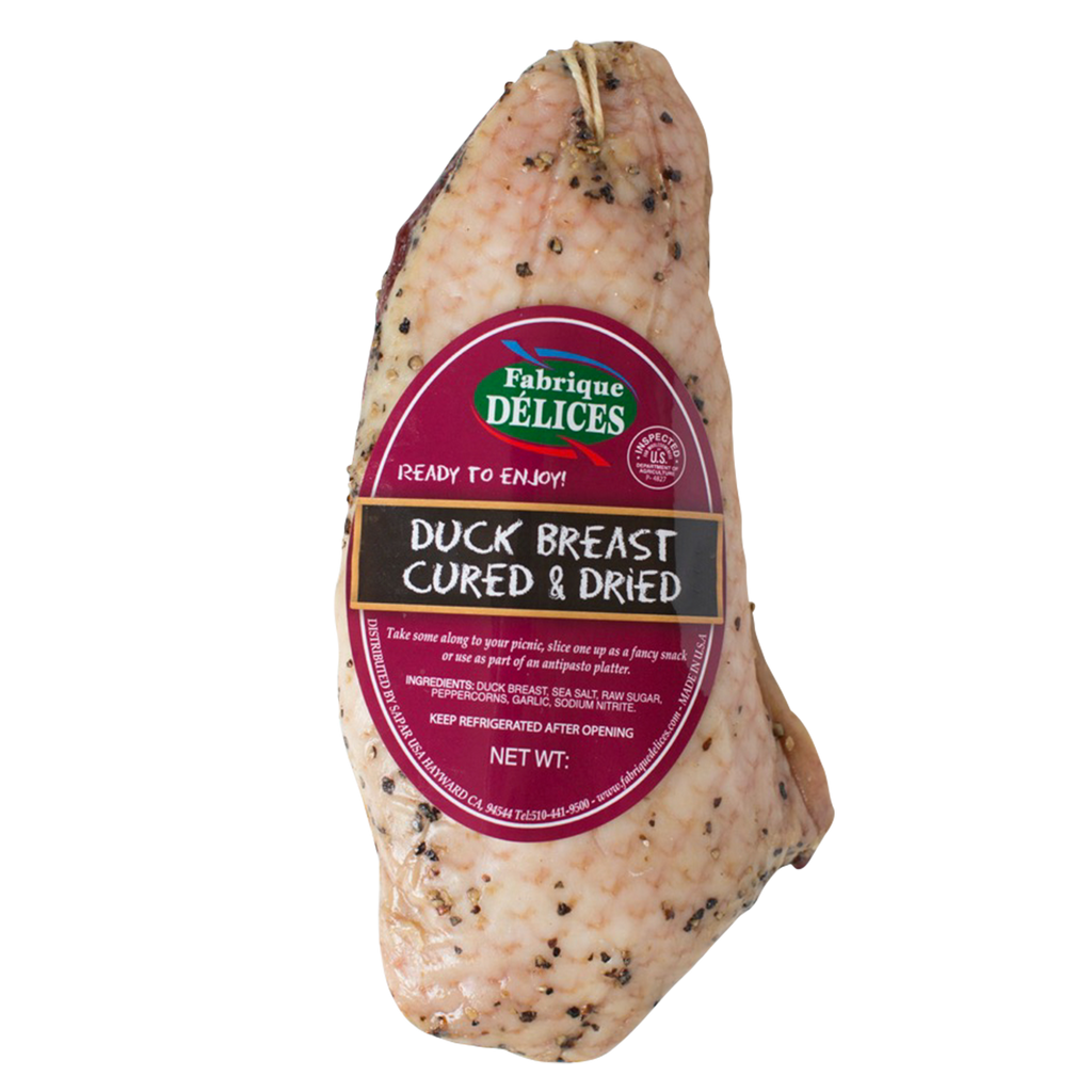 This duck breast is cured and dried. Slice it very thin and enjoy it the same way you would pork prosciutto.
