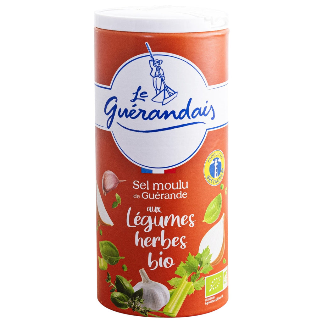 Le Guérandais organic vegetable and herb flavored salt is ideal on cooked vegetables, raw vegetables, in soups and especially in tomato juices and gazpachos.