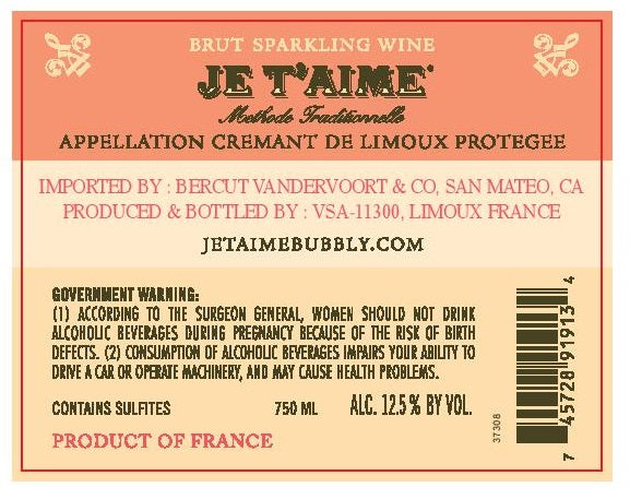 Je T'aime Brut and Brut Rosé are lively, delightful sparkling wines made with Chardonnay grapes from the Limoux region of France.