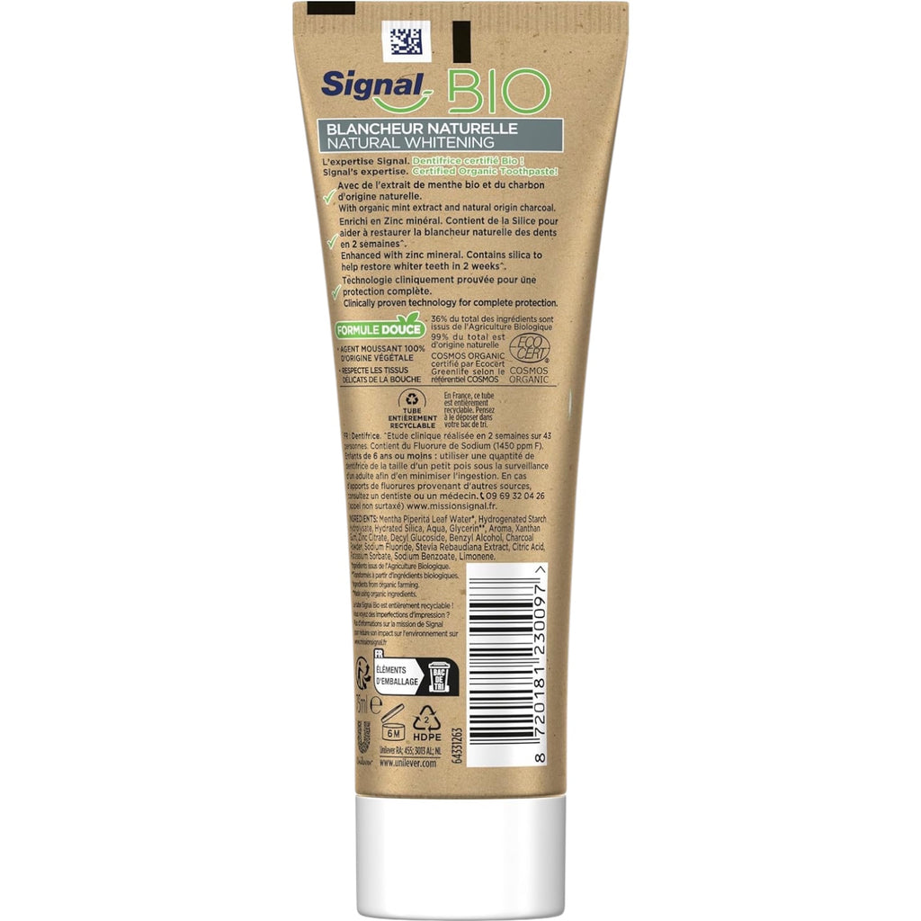 Signal Bio Natural Whiteness toothpaste contains Silica to help restore the natural whiteness of teeth in 2 weeks* (*Clinical study carried out in 2 weeks on 43 people.