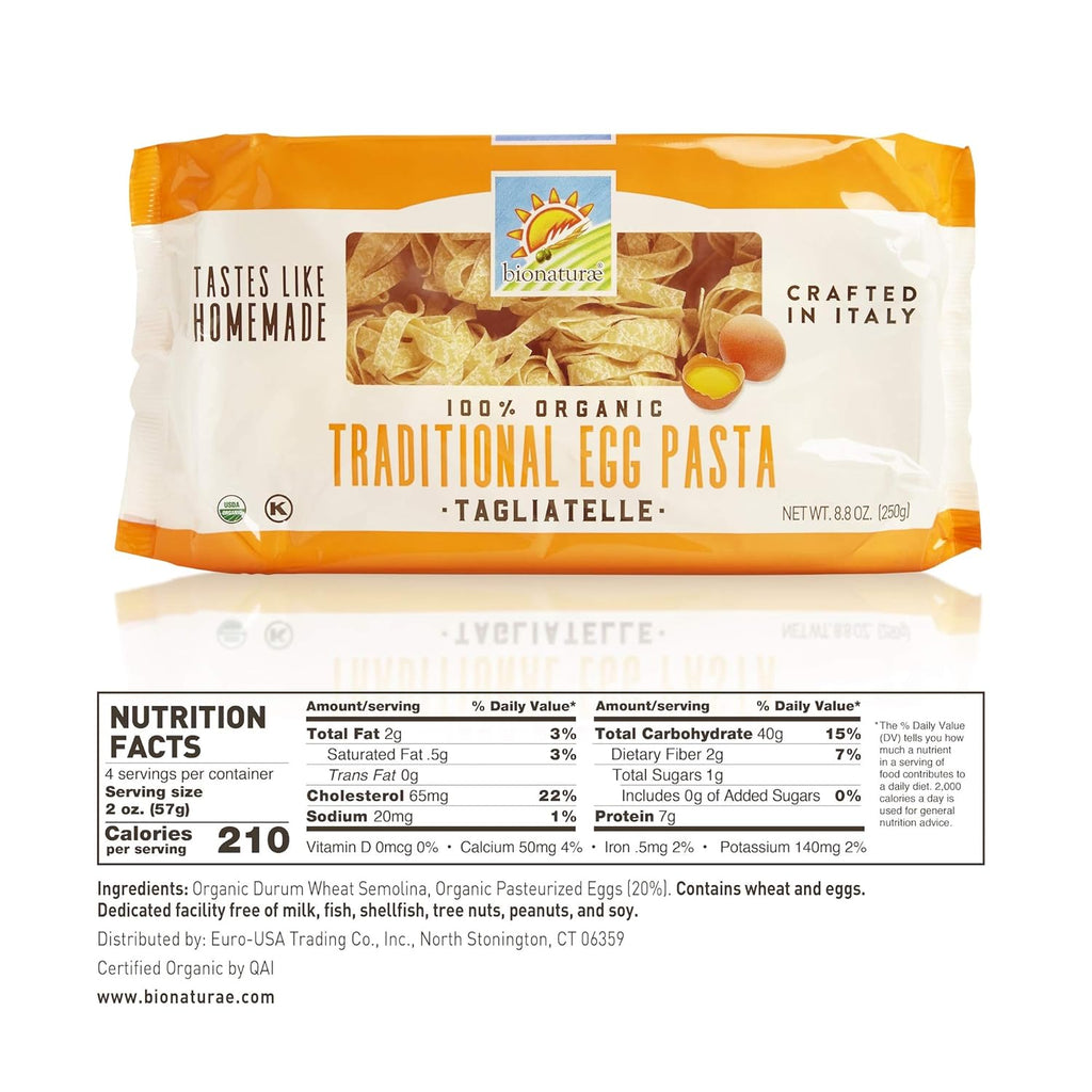 Ingredients: Organic Durum Wheat Semolina, Organic Pasteurized Eggs (20%)