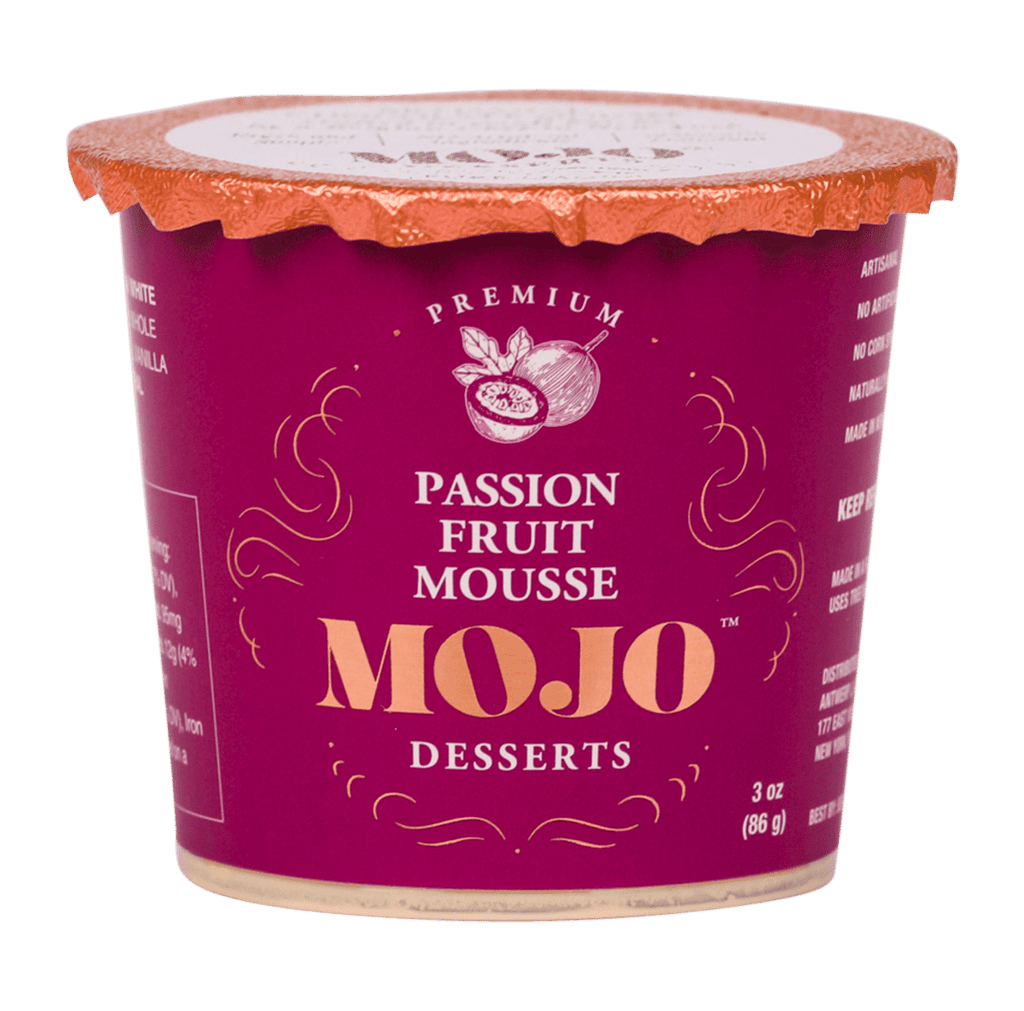 Ingredients: Cream, Passion Fruit Pulp, Callebaut Belgian White Chocolate, Sugar, Gelatin, and Natural Flavors.