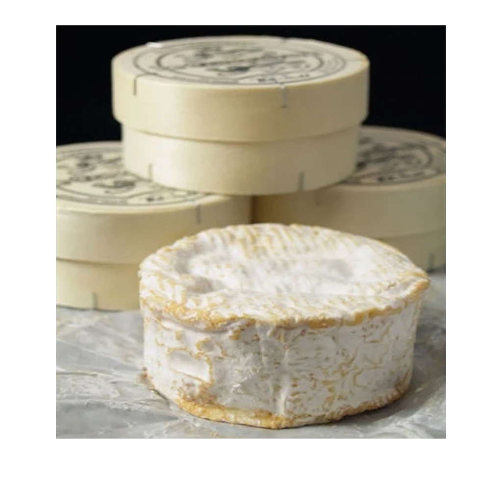 The traditional wooden popular box and wax-paper wrap create a microclimate that encourages the chalky heart of a young cheese to slowly break down over 3 to 4 weeks, eventually becoming deliciously soft and fudgy by the use-by date.