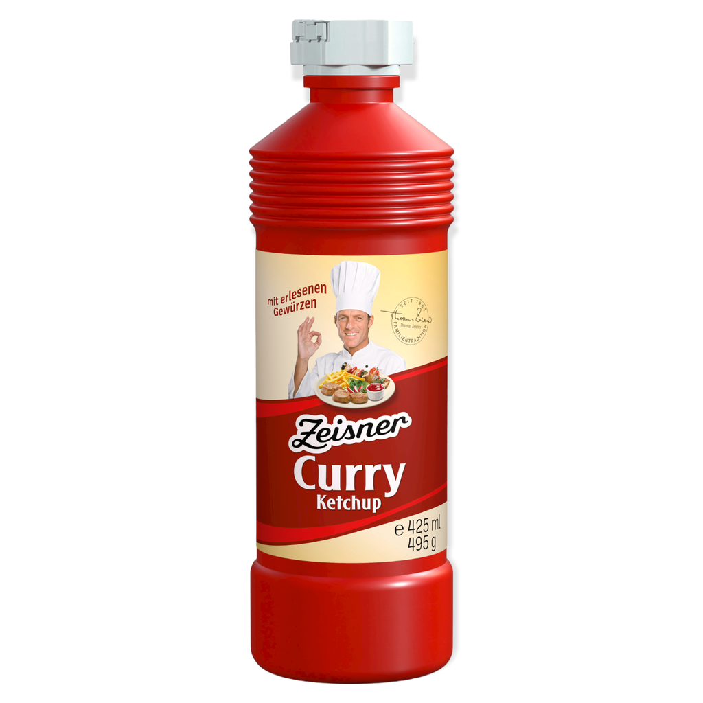 Ingredients: Tomato paste (35%), brandy vinegar*, sugar, apple paste, modified starch, salt, curry (0.7%), spices (0.7%) (contains mustard ), thickening agent: guar gum, locust bean gum.