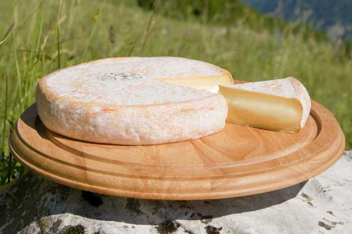 If you're missing your friend Reblochon -- which cannot be imported into the USA because of the raw milk legislation -- meet Douceur du Jura/Préféré de Fromi they are nearly identical. This unctuous wheel of delectable cows' milk cheese from Haute-Savoie is protected by a thick, velvety, brine-washed rind, and is aged at higher temperatures, allowing for optimal flavor development. The woodsy, hay, and sweet milk notes crescendo into a robust, yeasty experience, leaving a lingering, beefy pungency on your palate.
