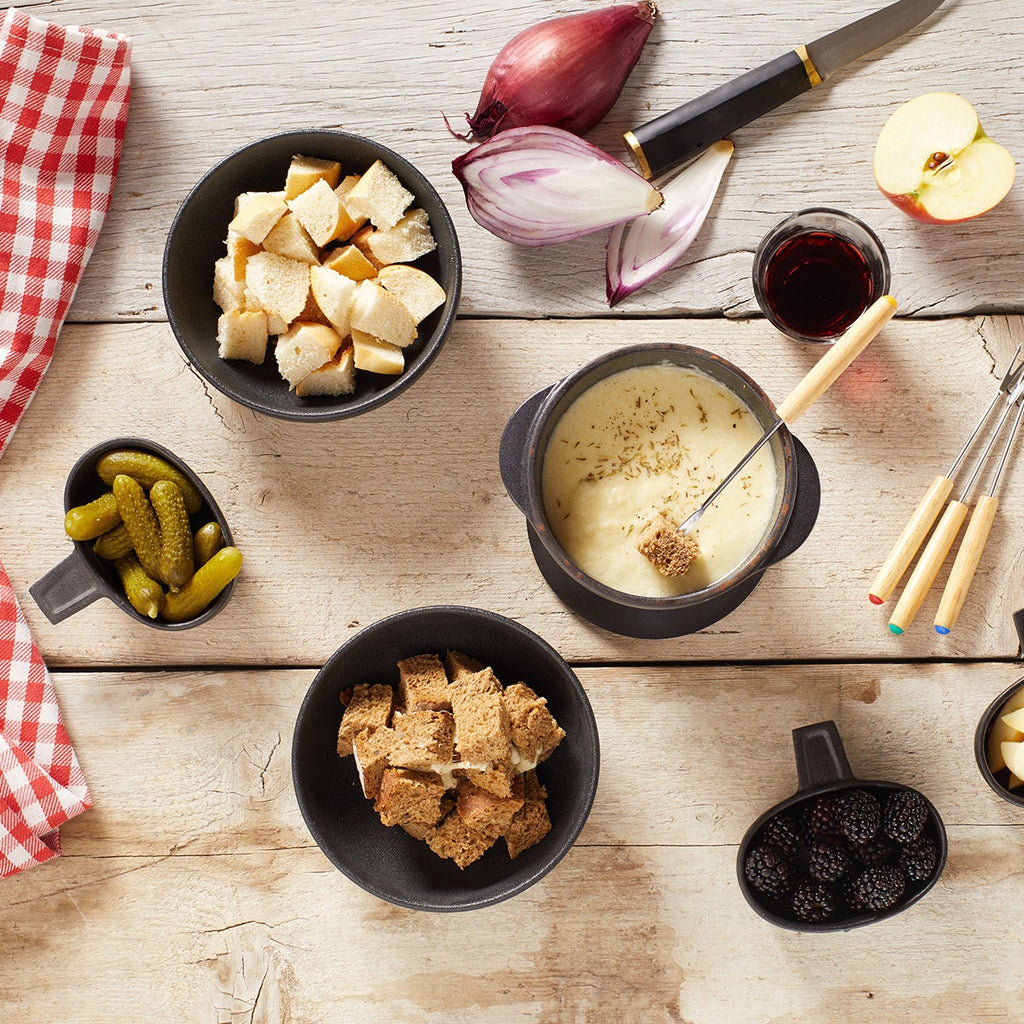 Gruyère AOP, Emmentaler AOP and Mountain Cheese come together in an extraordinary recipe intended to transform the joy of fondue into an experience bursting with flavour. A journey of the senses into the most beautiful parts of Switzerland.