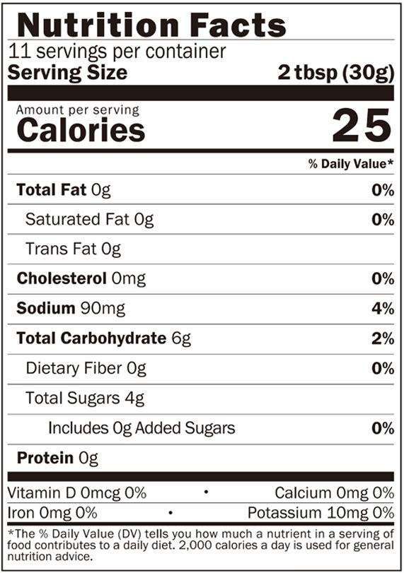 INGREDIENTS: Water, White Grape Juice Concentrate, Premium White Miso Paste (rice, water, soybeans, sea salt, alcohol), Apple Cider Vinegar, Honey, Yuzu Juice, Corn Starch, Gluten Free Soy Sauce (water, soybeans, salt, alcohol)